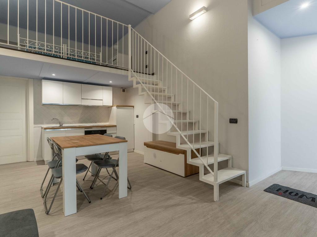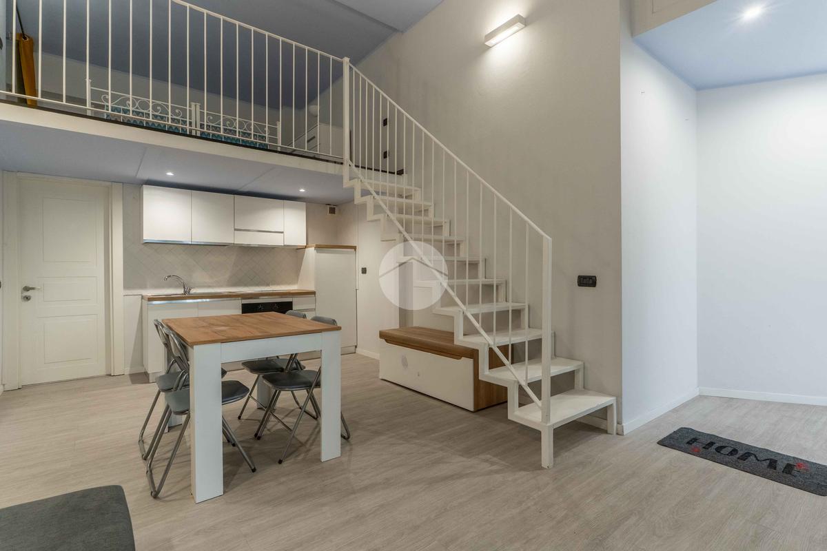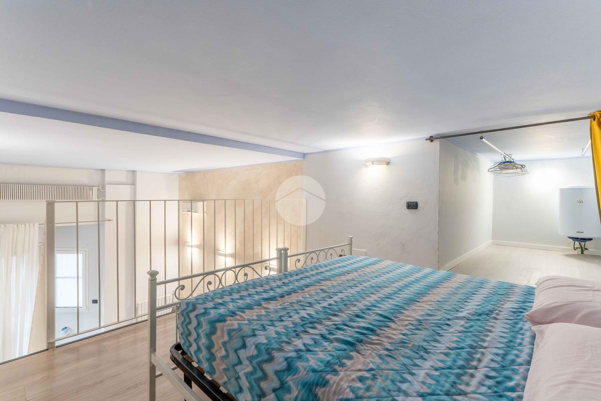 Entrando, ci accoglie un comodo ingresso che introduce a un ambiente unico, sapientemente organizzato per assicurare una chiara e funzionale divisione tra zona giorno e zona notte. Una pratica scala conduce alla zona soppalcata, attualmente adibita ad area notte, arricchita dalla presenza di un vano guardaroba, offrendo ulteriore spazio contenitivo e maggiore organizzazione degli ambienti.